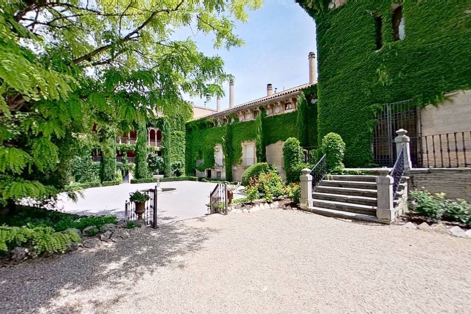 Parque y entorno del palacio: espacios verdes y arquitectónicos combinados.