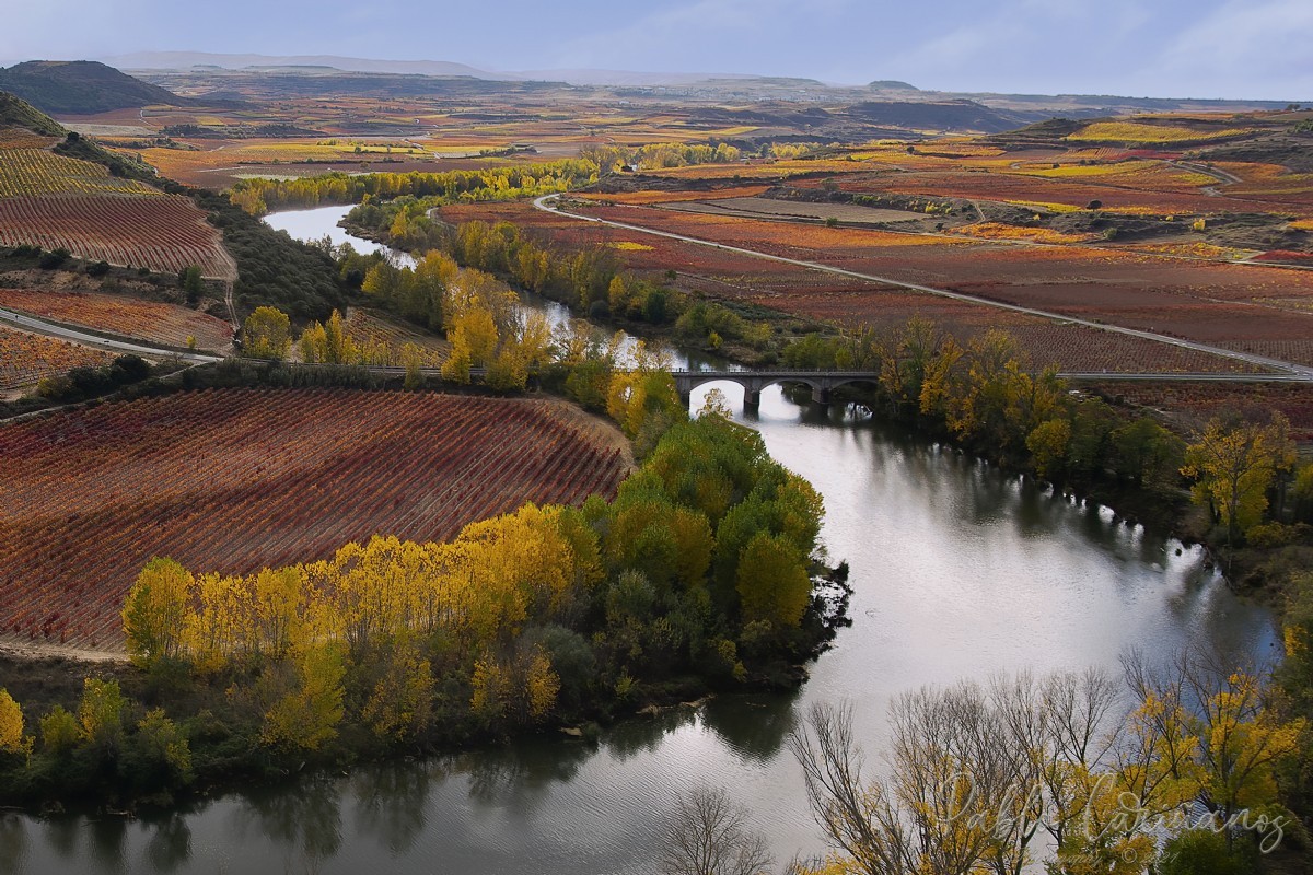 Paisaje rural del valle del Ebro: amplios horizontes agrícolas.
